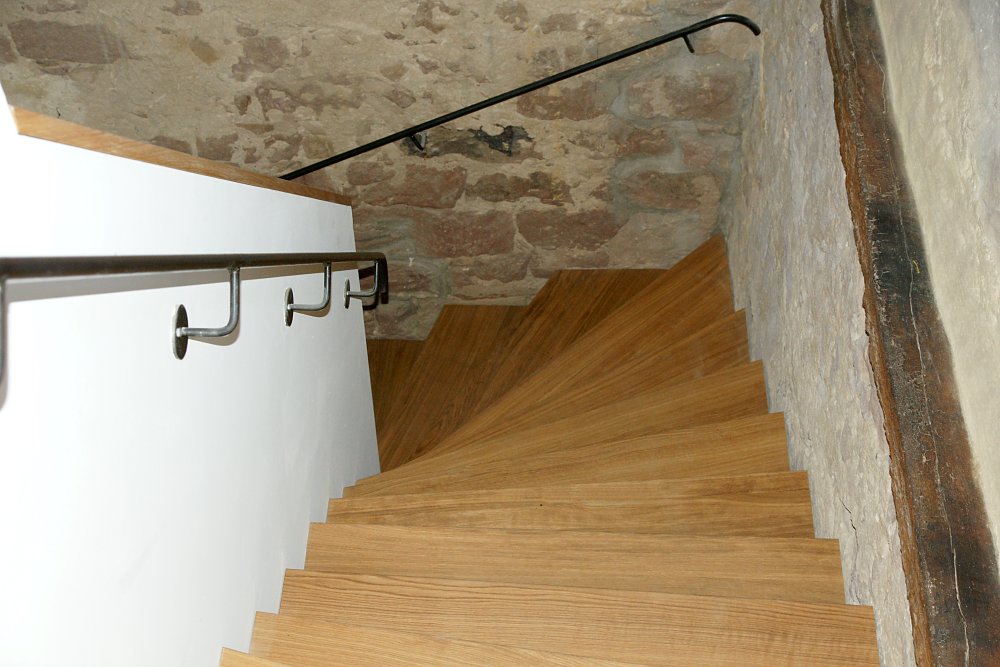 Bodenheizung. Treppe und Böden aus massivem Eichenholz. 60 qm