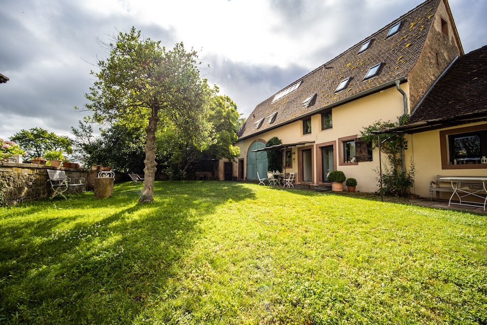 Die Remise, in der die Kutsche und die Pferde untergebracht waren, wurde 1774 als solides Wirtschaftsgebäude erbaut. Weit mehr als 200 Jahre sind seither vergangen, doch so manches erinnert noch an diese Zeit, wie das wunderschön verzierte Doppeltor mit Sonnensymbol und die alten Mauern aus Buntsandstein.